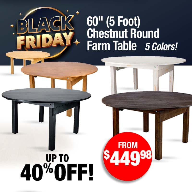 60" (5 Foot) Black Straight Leg Round Wood Farm Table