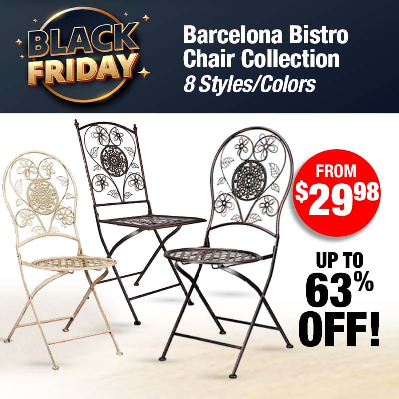 Rustic Matte Black Barcelona Bistro Folding Chair