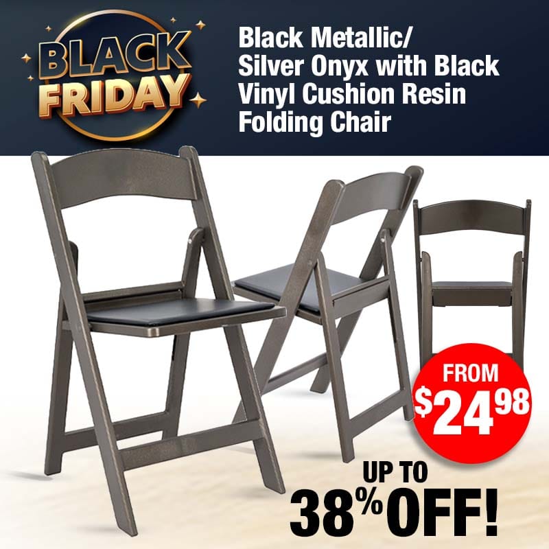 Black Metallic/Silver Onyx with Black Vinyl Cushion Resin Folding Chair