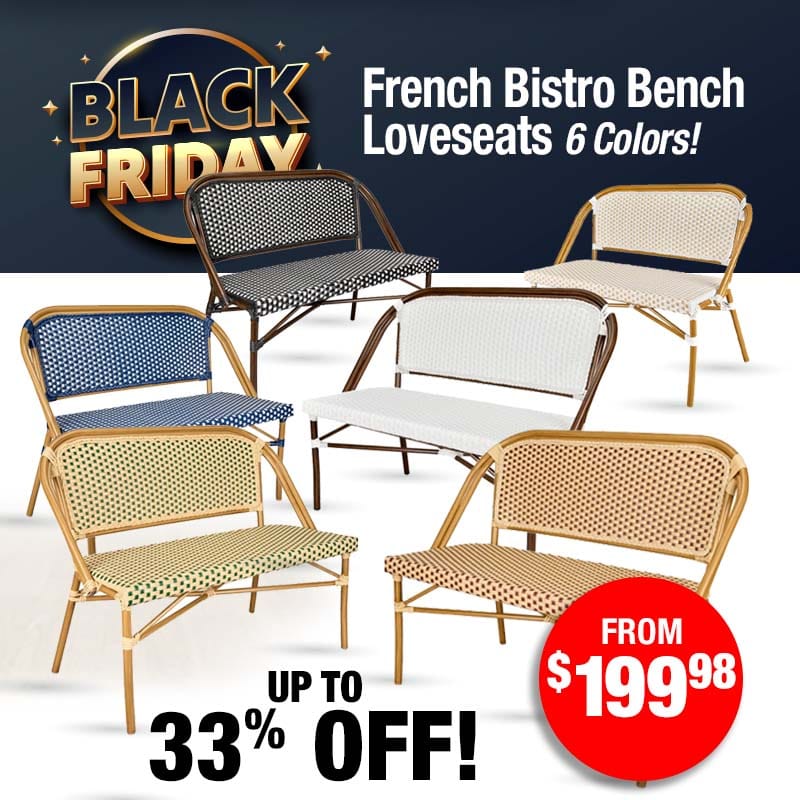 Beige on Maroon Light Frame Bistro Bench Loveseat