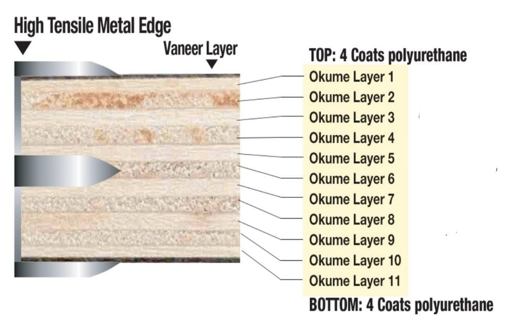 We build each table with commercial-grade, ¾” thick plywood. It includes 11 layers of premium wood and 2 layers of superior-grade veneer for a clean, professional finish. The surface fits standard table skirt clips, making styling easy.