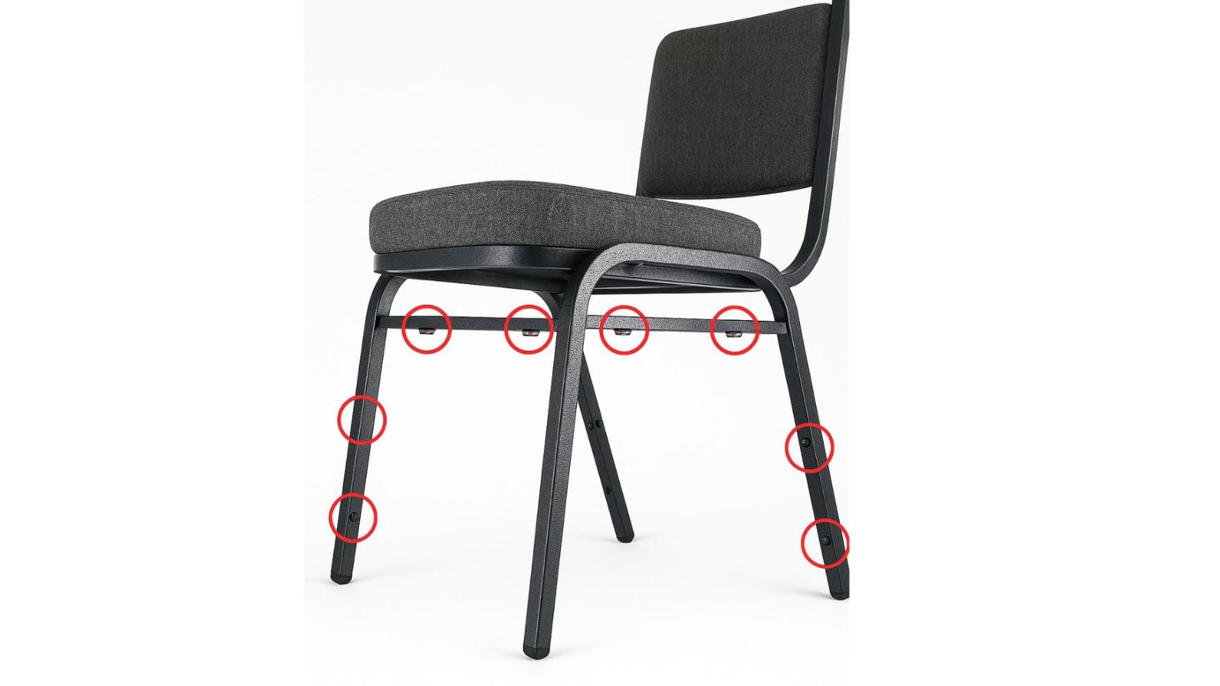 Critical joints are secured by welding them -- for maximum strength and stability! No screws! Our beautiful, muscular Banquet chairs do not use screws to secure the frame -- the joints in our chairs are spot-welded for increased strength, protection and longevity. It’s an extra step, but our chairs are built by skilled craftsmen who create the finest indoor event chair.