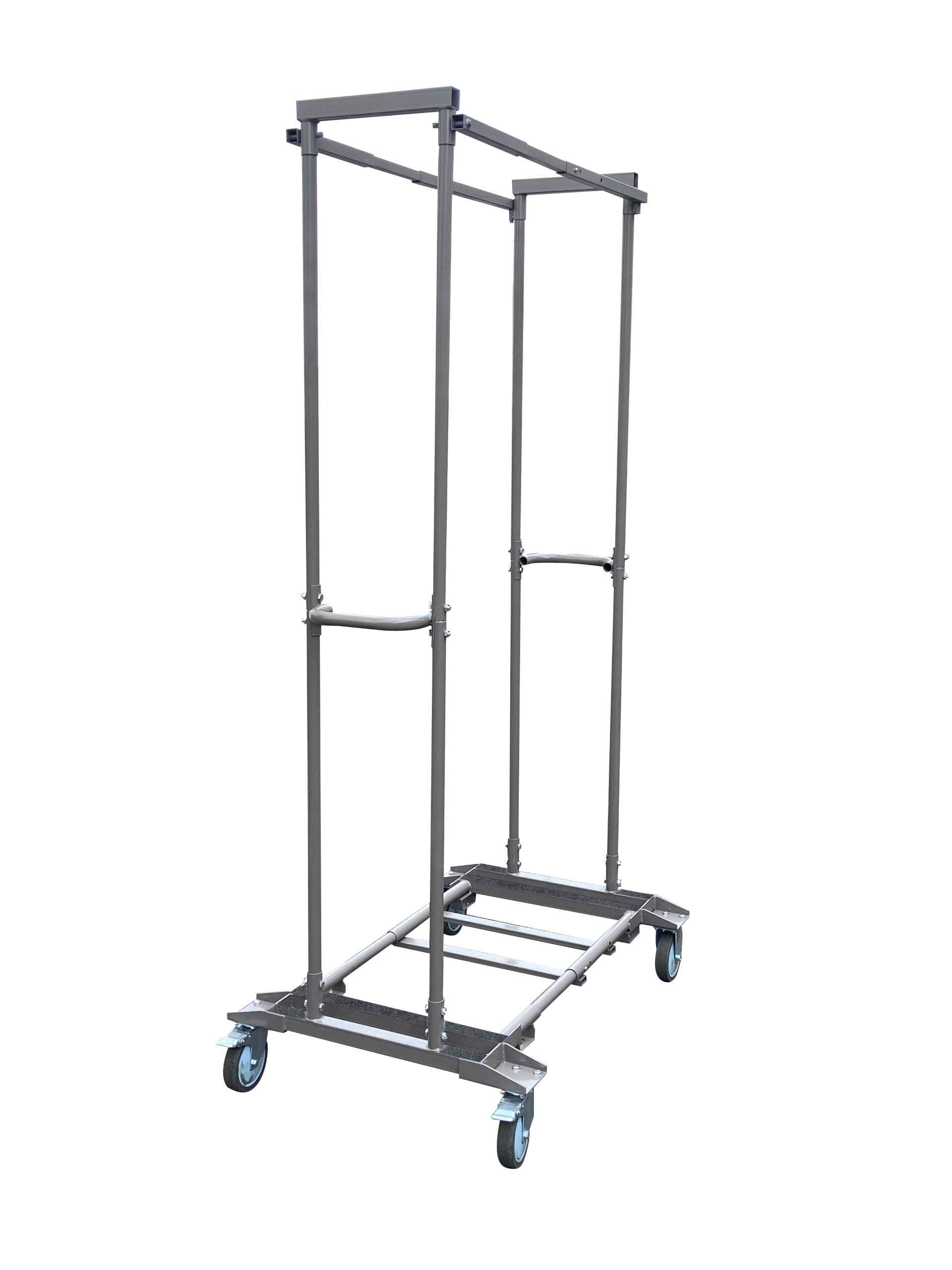 The Transformer Cart 113G is a professional-grade transport and storage solution designed for rental companies, venues, and event service providers. Built to handle Resin, Poly, Bamboo, Barcelona Bistro and Metal Folding chairs, this heavy-duty cart reduces labor time while increasing safety and efficiency. Reinforced steel construction ensures durability under constant use, while the compact design optimizes warehouse space and fits easily through standard doors. Outfitted with smooth casters and two included heavy-duty straps, the 113G keeps chair stacks secure during transport and loading. Engineered for long-lasting reliability, this cart is a must-have for companies managing large-scale chair inventories.