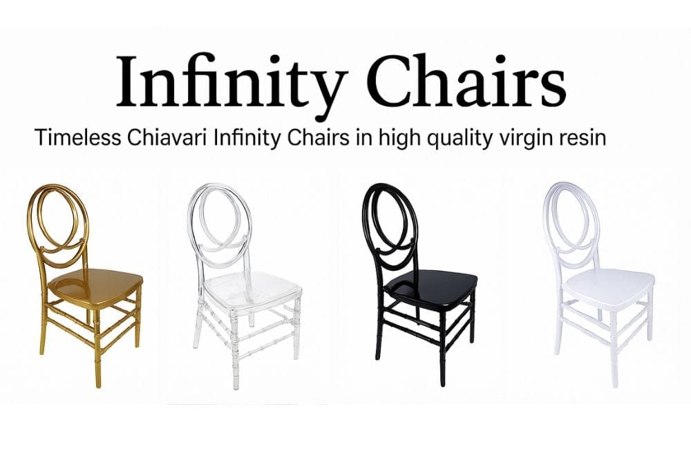 Our whimsical sibling of the omnipotent Chiavari Chair, our Infinity Chair features a sleek design - a modern take on a classic chair - that adds a touch of sophistication to any event or space. The Infinity-style backrest, which forms a continuous loop, gives these chairs a singularly stylish look. There's simply nothing like it. A true "must-have" for weddings, banquets, parties and other special events, as well as in restaurants, hotels and event venues. And since the base of the chair is the Chiavari design, your Chiavari cushions will fit our Infinity chairs. Cutting-edge class, a feast for the eyes.