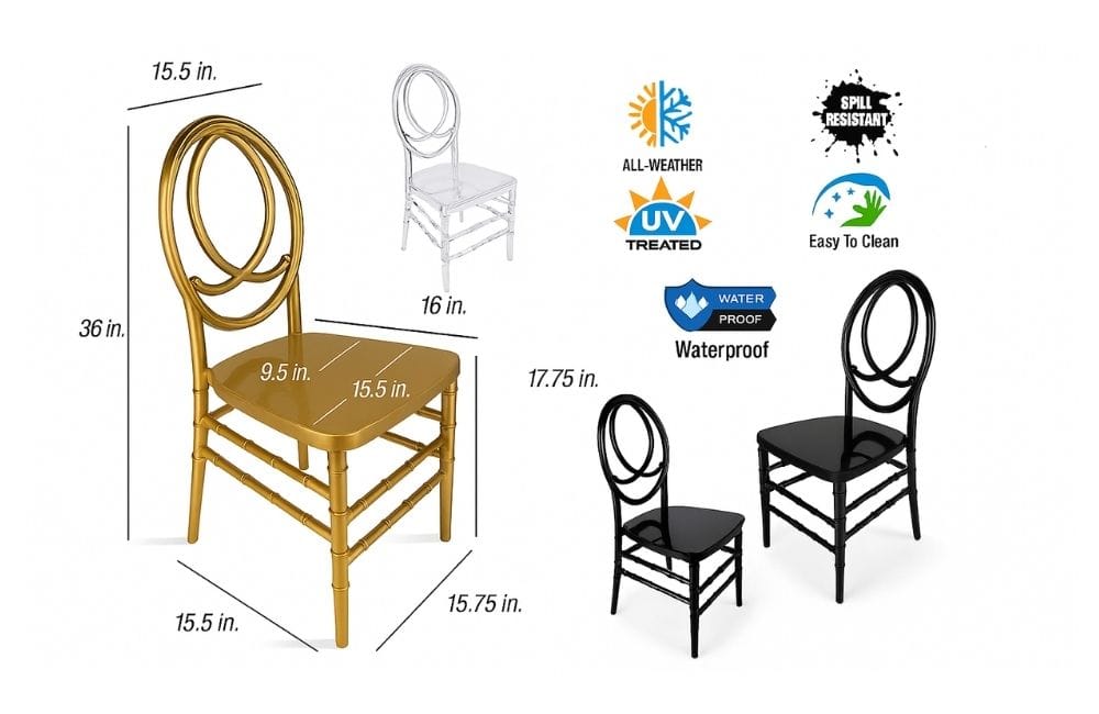 We love the graceful design and timeless appeal of the Infinity Chair, but it is the high-quality, all-weather performance that makes our chairs "event superstars". They stand up to drenching rain or scorching sun - they're 100% waterproof, treated for full UV protection and they're a snap to clean. Use our chairs indoors and outdoors - they'll be beautiful today - and beautiful tomorrow.