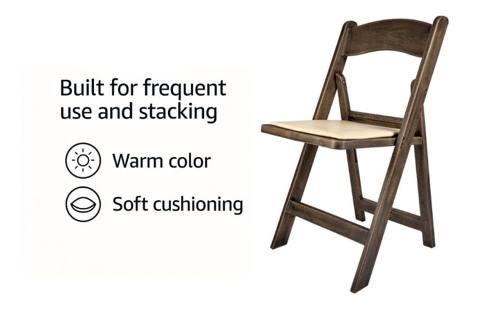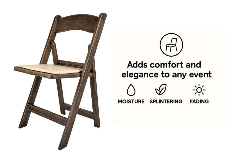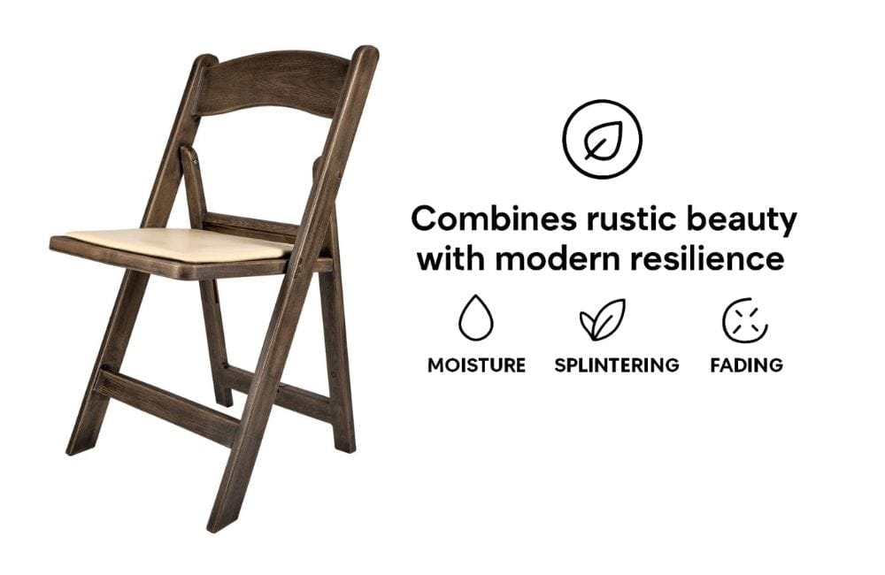 Tired of the hassle of maintaining wooden chairs? Our new WoodGrain™ ResinFolding Chairs offer the beauty of wood without the upkeep. These innovativechairs combine the durability and weather resistance of resin with the stunningappearance of real wood.