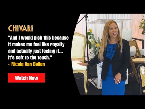 The Royal Chair by Chivari is our most beautiful chair ever, blending classic style with cutting-edge innovation. Get ready for the hottest chair of 2025 and transform any setting into a statement of luxury! This Chivari exclusive provides the grandeur and allure of our larger Throne chairs in a traditional chair that everyone can enjoy. The Royal Chair creates a regal ambiance elevating the entire room’s décor, producing endless memories and photo opportunities for your guests.
