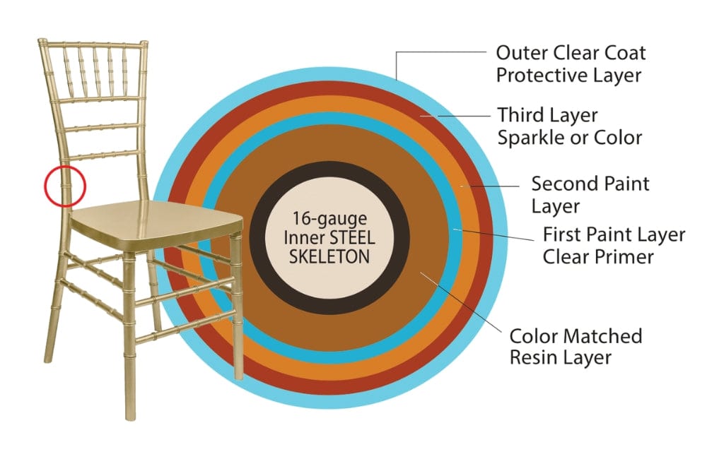 A 16-gauge steel skeleton is what makes our Chiavari chairs stronger and more resilient than other chairs.