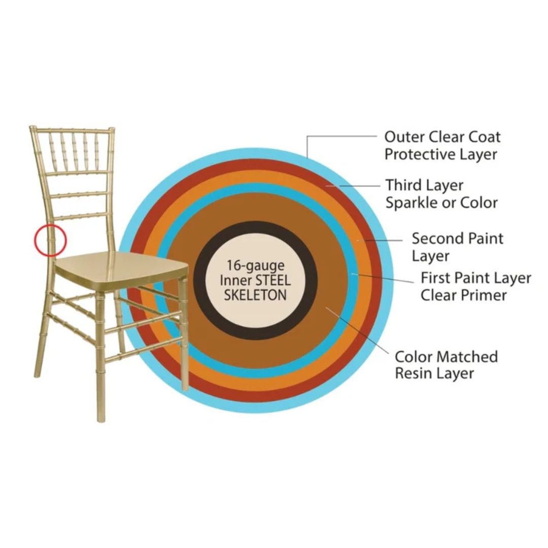 A 16-gauge Steel Skeleton™ is what makes our Chiavari chairs stronger and more resilient than other chairs.